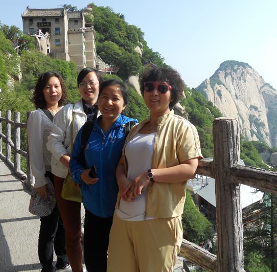 經過近六個小時的車程,大家終于到達活動的目的地。參觀了古代皇家溫泉園林和近代西安事變舊址于一體、唐玄宗與楊貴妃避暑的行宮華清池、貴妃池、五間廳(“春寒賜浴華清池,溫泉水滑洗凝脂”的海棠湯、蓮花湯、星辰湯、尚食湯以及太子湯)等,以及西安事變舊址--環園、五間廳。后游覽1987年被聯合國教科文組織批準列入《世界遺產名錄》的世界第八大奇跡秦始皇帝陵博物院一、二、三號坑、銅車馬展廳。第二天,大家不顧昨日的勞累,興致勃勃的奔赴中國著名的五岳之一——西岳華山。華山之險居五岳之首,有“華山自古一條路”的說法,華山奇峰聳立,絕壁巍峙,懾人魂魄,共有東、南、西、北、中,五峰環峙,雄奇險峻,高擎天空,遠而望之狀若一朵盛開的蓮花,大家一路歡歌,一路笑談,絲毫不懼華山的艱險。在旅途中,大家相互幫扶,共享美食,充分體現了我華威員工齊心協力,互幫互助的團隊合作精神。