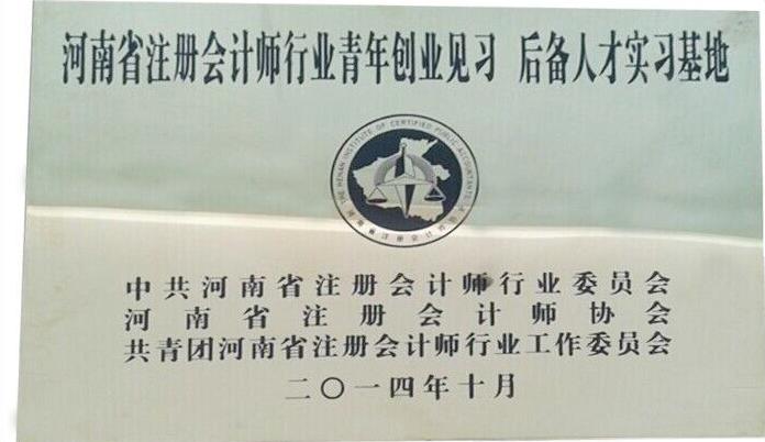 根據《河南省注冊會計師協會關于注冊會計師培養實習基地建設管理辦法》和《河南省注冊會計師協會關于建立“注冊會計師行業青年就業創業見習基地”的通知》,在省會計師協會的積極協調下,通過我所的積極努力,獲得了為河南大學和河南科技大學財會類學生提供實習基地的機會,充分體現我所在開拓大學畢業生就業機會方面所做的努力,我們將充分發揮基地建設作用,加強與基地院校合作,努力提升行業對青年學生的吸引力,為我省注冊會計師行業的健康持續發展培養儲備后備力量。