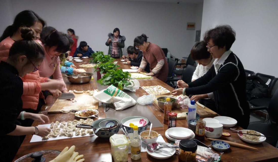 上午10點,大家圍在一起,各顯身手,有人揉面,有人搟皮,有人包餃子,各個環節有條不紊的進行著,現場氣氛很是活躍。經過大家一起努力,很快餃子就包好了,品嘗著各式各樣的餃子,大家非常開心。