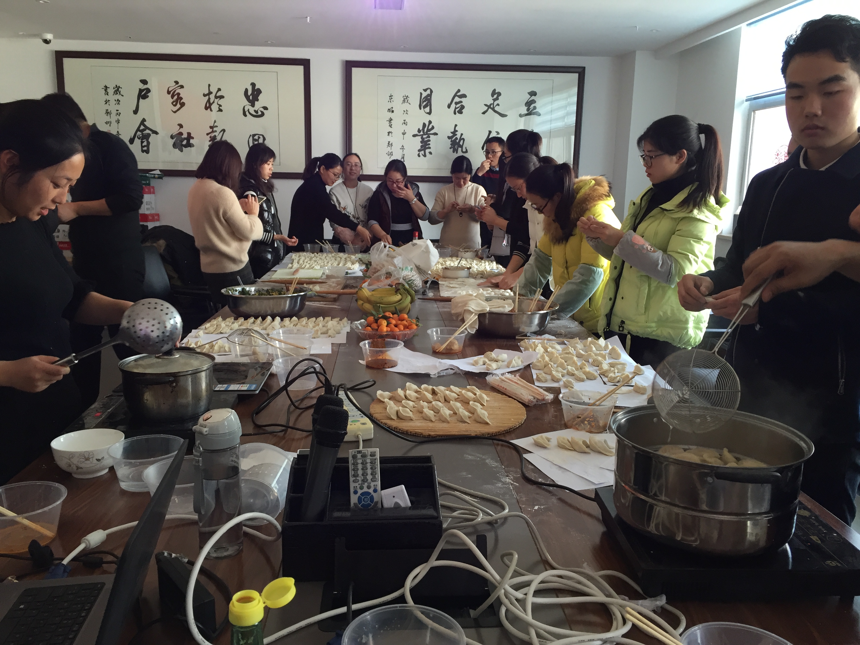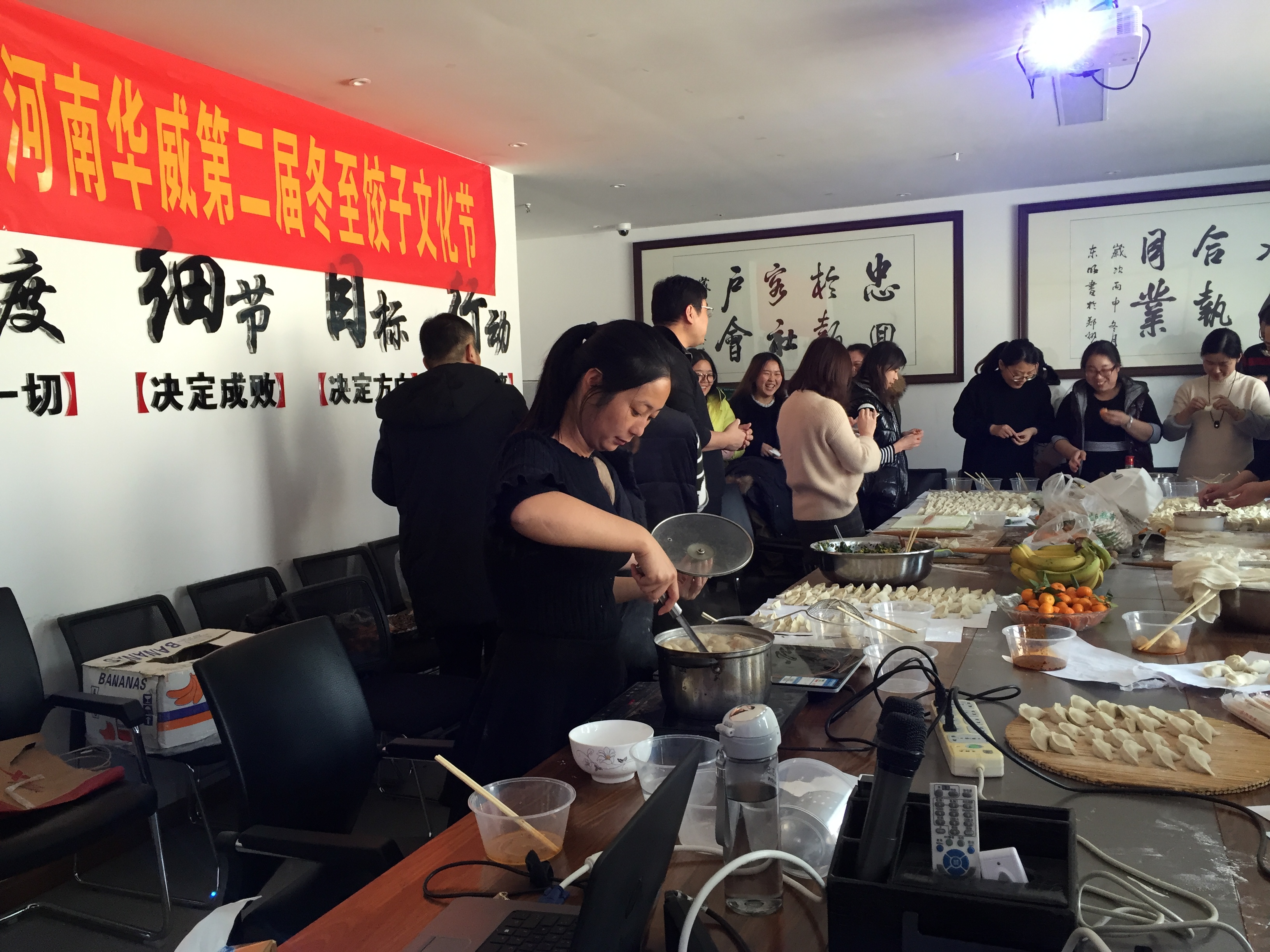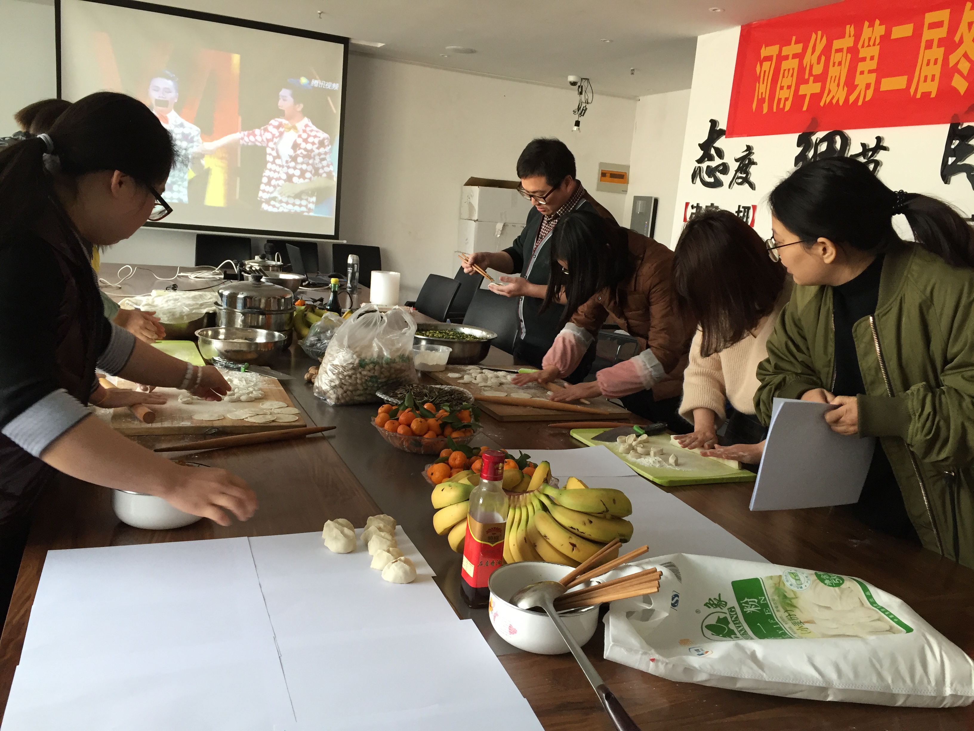 年年冬至公司都會(huì)舉辦這樣一個(gè)活動(dòng),不只是為了增進(jìn)員工與員工之間的協(xié)同合作關(guān)系,促進(jìn)感情和友誼,更是企業(yè)文化的一種深刻體現(xiàn)。剛到十點(diǎn),大家活兒就忙碌起來(lái),就是為了趕在,有揉面的、搟皮的、包餃子的,都紛紛拿出各自的看家本領(lǐng)了。餃子也一排排的整齊放在案板上,有素餡的、肉餡的,包的圓的、扁的,各種形狀各種口味眼花繚亂,令人胃口大增。