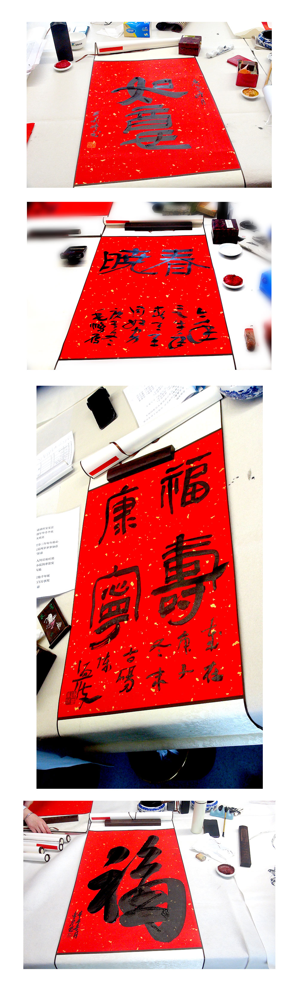 活動現場,華威的員工早早準備好需要的筆墨紙硯,老師們或潑墨有力,或婉約飄逸,或秀麗頎長、或方圓兼備,用不同的風格酣暢淋漓揮灑出藝術家的博大胸懷和仁愛之心,傳達出對節日的祝福。