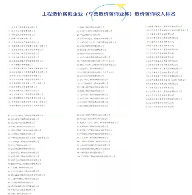 近日,中國建設(shè)工程造價管理協(xié)會公示《2020年工程造價咨詢企業(yè)造價咨詢收入排名》。