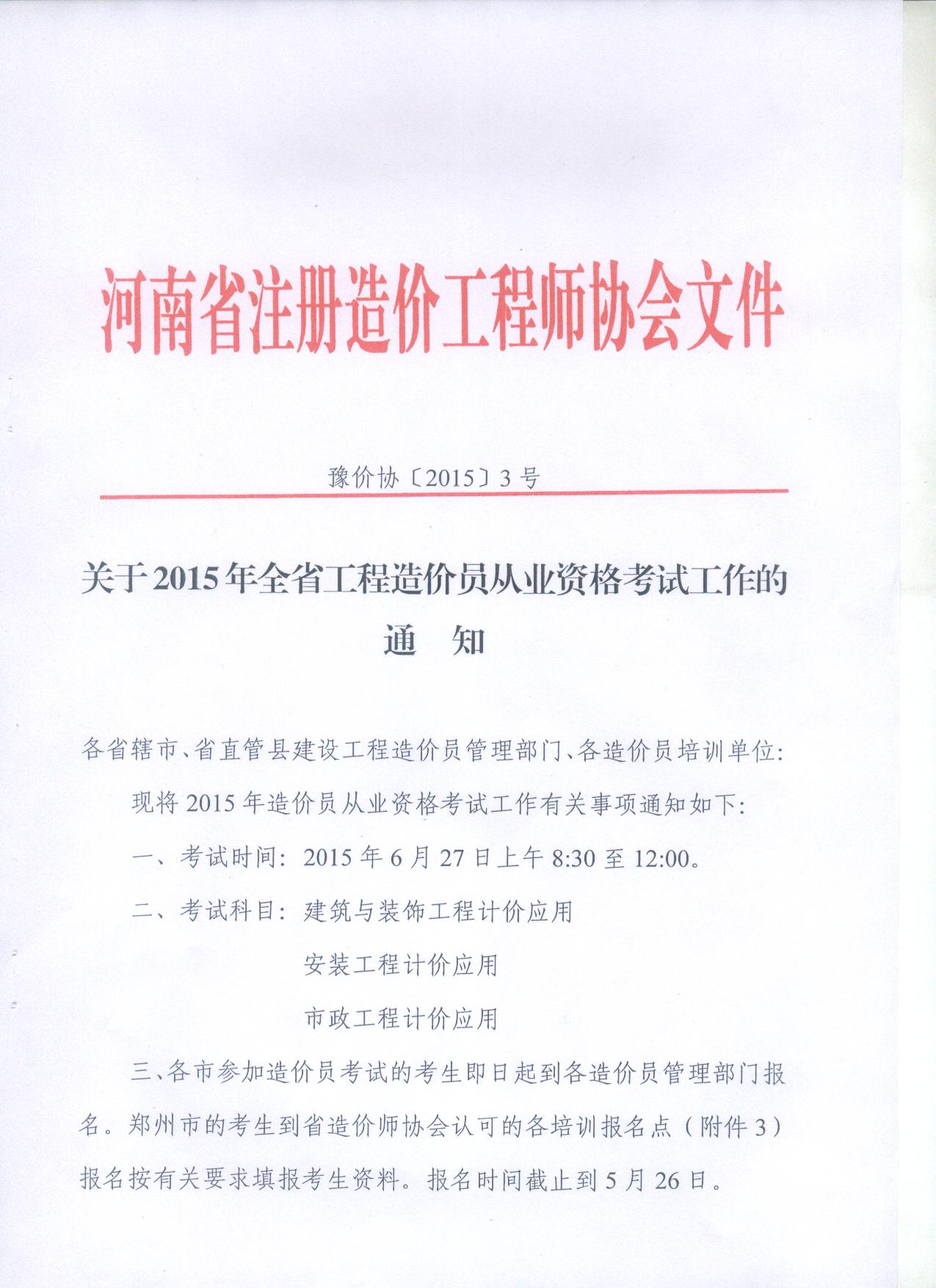• 關(guān)于2015年全省工程造價員從業(yè)資格考試工作的通知